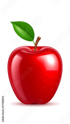 Vibrant Red Apple with Leaf - A Fresh and Healthy Delight.