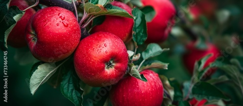 Vibrant Red Apples on a Branch: A Bountiful Autumn Harvest at the Orchard