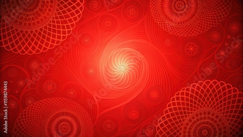 Vibrant red background with geometric shapes and swirling patterns, illustration, red