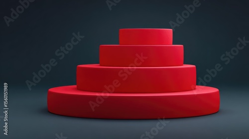 Vibrant Red Circular Platforms Stacked in Ascending Order on a Dark Background for Modern Design and Creative Projects, Ideal for Abstract Illustrations and Presentations