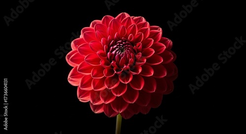 Vibrant red dahlia flower with intricate petals against a dark background, showcasing natural beauty.