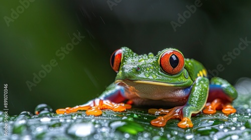 Vibrant Red Eyed Tree Frog Perched on a Leaf in the Rainforest
