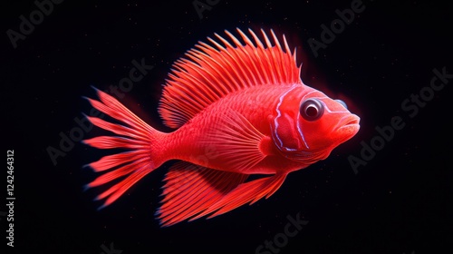 Vibrant Red Fish Swimming Gracefully in Dark Water Background