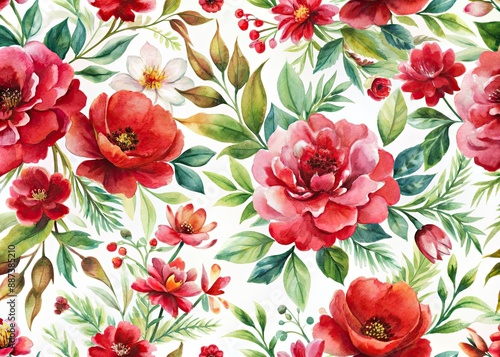 Vibrant red floral blooming seamlessly on a crisp white background, creating an elegant and sophisticated abstract watercolor design perfect for various creative projects.