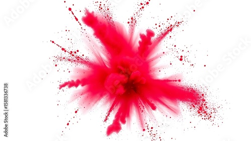 Vibrant red Holi powder explosion captured dynamically against a white background.
