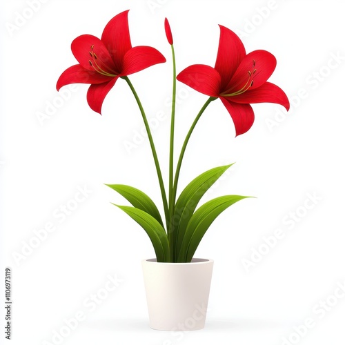 Vibrant Red Lily Flowers in a Modern White Pot Set Against a Clean Background for Home Decor, Interior Design, and Floral Arrangement Inspirations