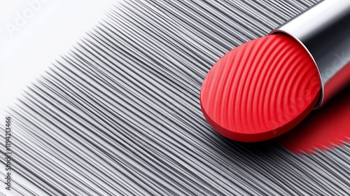 Vibrant red lipstick glides smoothly leaving bold streaks on sleek grey surface. AI Generated