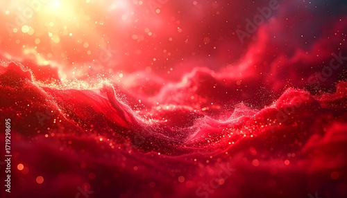 Vibrant red nebula in the vast cosmos.