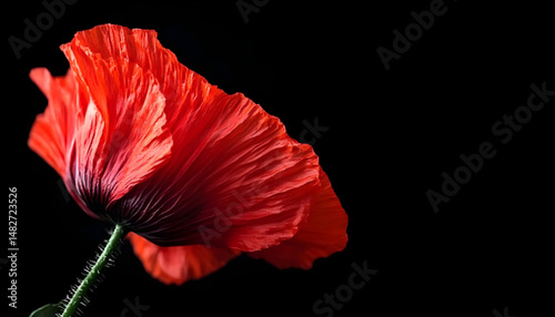 Vibrant red poppy blossom, delicate petals, black backdrop, papaver rhoeas, vibrant