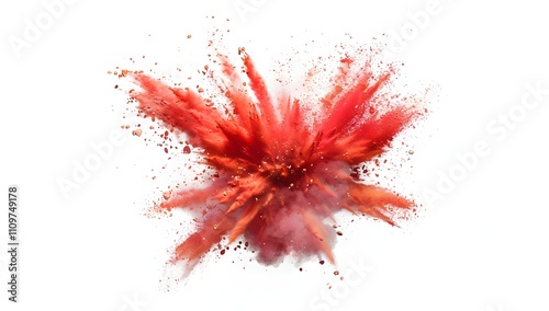 Vibrant red powder explosion on white background. A burst of color and energy, perfect for dynamic designs.