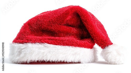 Vibrant red Santa hat with white pompom, isolated on white background, festive Christmas spirit