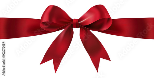 Vibrant red satin bow, perfect for adding a festive flair to gifts and presents during holidays like Christmas and birthdays, featuring a transparent background for versatile design.