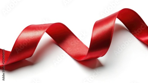 Vibrant red silk ribbon elegantly curves, isolated against a black background in a high-resolution studio shot.