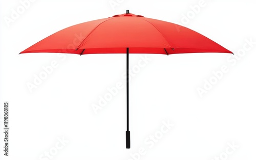 Vibrant red umbrella with a sleek design, isolated on a bright white background