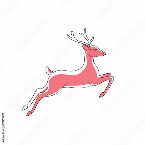 Vibrant reindeer leaping gracefully in a pink hue on a white background for festive winter theme