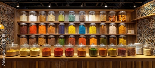 Vibrant restaurant interior featuring an array of colorful spices that enhance the warm and inviting ambiance for a unique dining experience