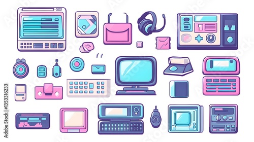 Vibrant Retro User Interface Elements in Vaporwave Aesthetic Design