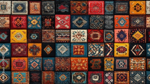 Vibrant seamless pattern featuring micro geo mixes mirror tiles and traditional Turkish kilim designs ideal for boho inspired wall decoration interior design textile prints