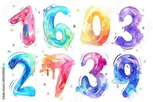 Vibrant set of numbers painted in different colors, great for educational materials or design projects