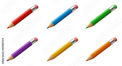 Vibrant set of six short colored pencils isolated on a white background, symbolizing creativity, education, and artistic ideas