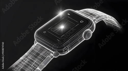 Vibrant Smartwatch Call Notification in Monochrome Line Drawing Style