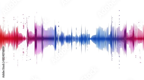 Vibrant sound waves in layered gradients of blue, red, and purple, designed to reflect the complexity of audio technology, on a white background.