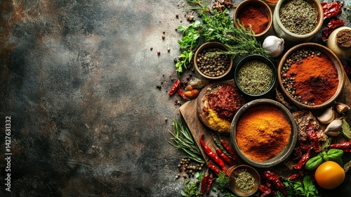 Vibrant spice market showcasing a variety of herbs, spices, and seasonings for culinary creativity, inspiring flavorful