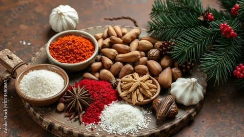 Vibrant Spices and Nuts Display: Perfect for Holiday Cooking, Seasoning, and Festive Decor
