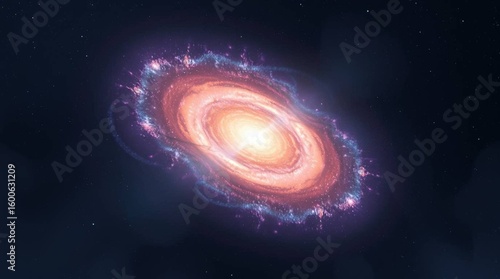 Vibrant spiral galaxy glowing brightly against a dark starry expanse, showcasing cosmic beauty and celestial wonder.