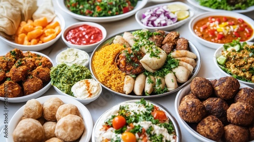 Vibrant Spread of Diverse Dishes on a Festive Table Setting