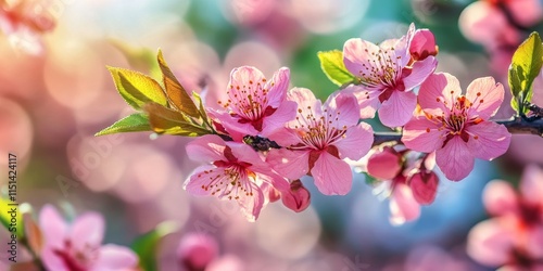 Vibrant spring flowering nectarine blossoms create a stunning display in the garden, showcasing the beauty of nectarine blossoms as they bloom and enhance the garden s charm.