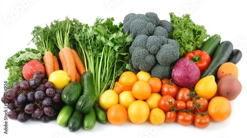 Vibrant still life of fresh fruits and vegetables, celebrating natural abundance and healthy living.