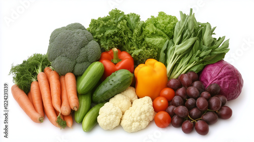 Vibrant still life of fresh fruits and vegetables, celebrating natural abundance and healthy living