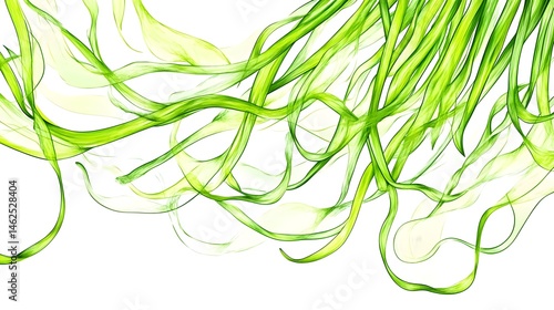 Vibrant, stylized depiction of flowing green plant stalks.