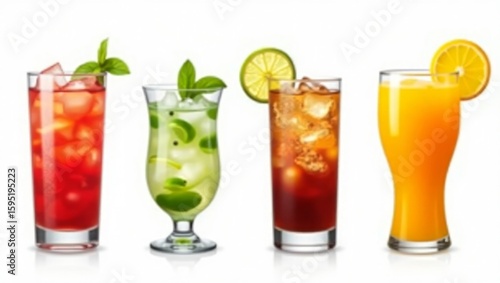 Vibrant Summer Mocktails with Fresh Mint and Citrus – Refreshing Non-Alcoholic Drinks on White Background