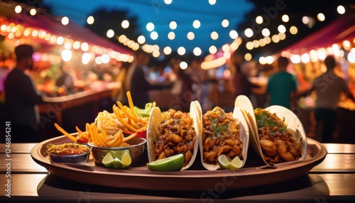 Vibrant summer night market showcasing delicious taco delights for hungry food lovers