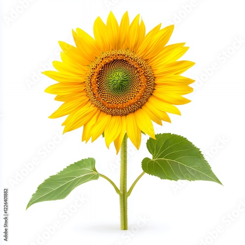 Vibrant Sunflower Close-Up: A Single Blossom Isolated on White