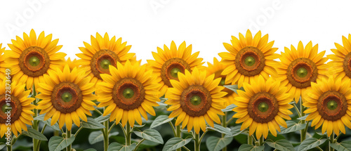 Vibrant sunflowers in full bloom, showcasing bright yellow petals and rich brown centers, create cheerful and lively atmosphere