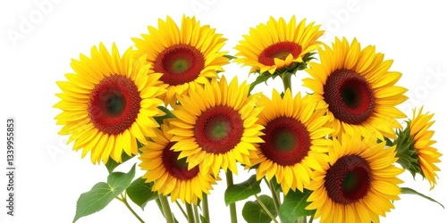 Vibrant sunflowers isolated on pure white backdrop, isolated, flower