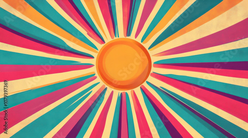 Vibrant sunrise casting golden rays over rolling ocean waves in an abstract artistic representation