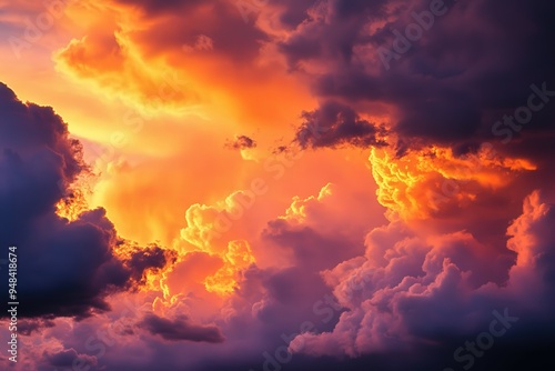 Vibrant sunset clouds illuminated in the evening sky over the horizon
