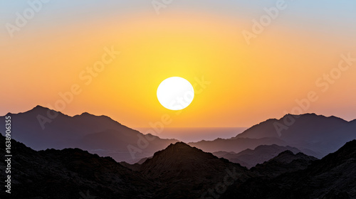 Vibrant sunset over mountain silhouette with warm hues and serene atmosphere