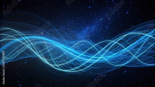 Vibrant swirling blue lines dance across a dark canvas, vibrant hue, movement, fluid motion, colorful, kinetic energy