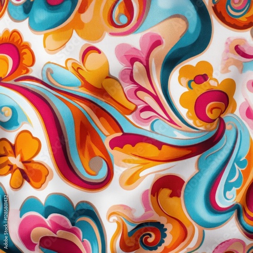 Vibrant Swirls and Colorful Floral Patterns on White Background