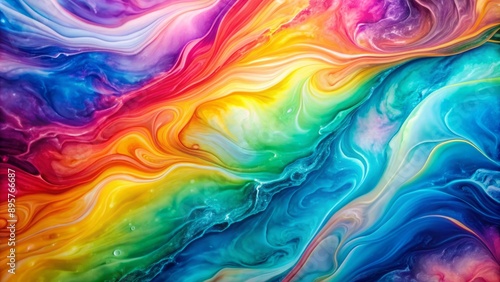 Vibrant swirls of iridescent rainbow hues dance across a mesmerizing marble texture, creating a stunning abstract background of beauty.
