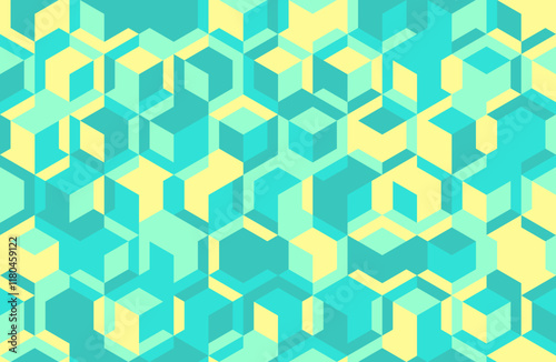 Vibrant teal and yellow geometric pattern. Abstract isometric cube design, ideal for backgrounds, website banners, or textile prints.
