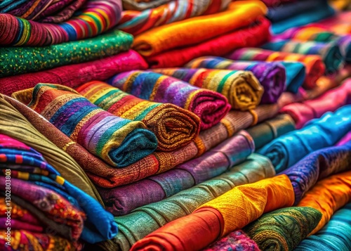Vibrant Textile Landscape: A Candid Shot of Colorful Fabrics