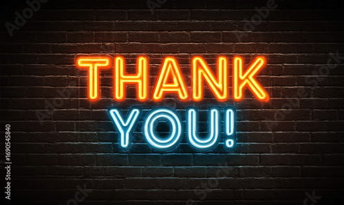 Vibrant Thank You Neon Sign Against Dark Brick Wall.