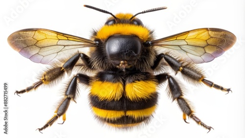 Vibrant, tiny, solitary, happy, yellow and black striped Barbut's Cuckoo bumblebee insect isolated on transparent background with alpha channel.