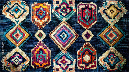 Vibrant Traditional Geometric Tapestry with Modern Textural Twist in Rich Natural Fibers